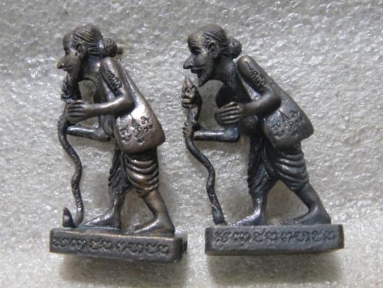วัดใจเคาะเดียว.............รูปหล่อชูชก ยันต์ 5 มหาลาภ หลวงพ่อสาคร วัดหนองกรับ จ.ระยอง เนื้อทองแดง เลข 2581 + 2553 สวย รวม 2 องค์ พร้อมกล่องเดิม