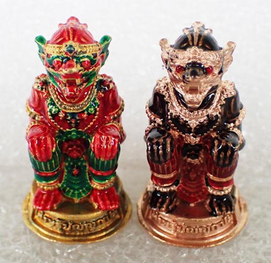 $วัดใจ 2 องค์ค่ะ รูปหล่อหนุมาน ลูกพระพายฆ่าไม่ตาย รุ่น เศรษฐีปุญฺญกาโม หลวงพ่อพัฒน์ ปุญญกาโม วัดห้วยด้วน จ.นครสวรรค์ เนื้อสัมฤทธิ์ชุบทอง ลงยากายแดง + เนื้อทองศรัทธา ชุบนาค ลงยากายดำ กล่องเดิมค่ะ$