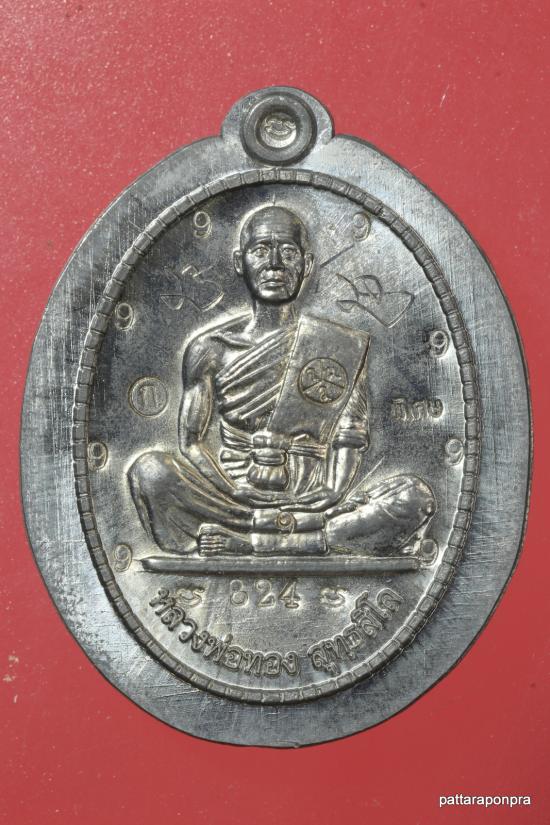 เหรียญหลวงพ่อทอง รุ่นสร้างบารมี ปี2566 เนื้อตะกั่วไม่ตัดปีกหลังเรียบมีจาร หมายเลข 824
