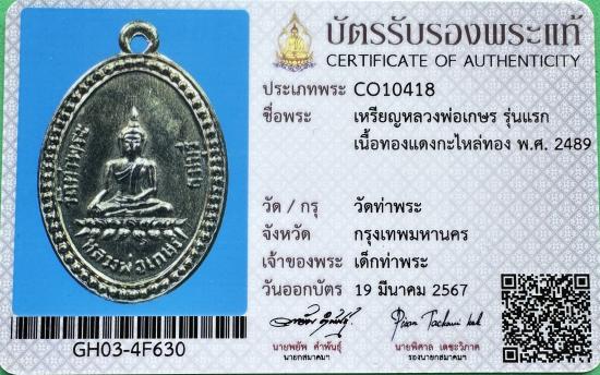เหรียญหลวงพ่อเกษร รุ่นแรก เนื้อทองแดงกะไหล่ทอง ปี 2489 กรุงเทพฯ