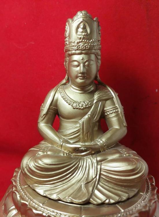 พระบูชา พระโพธิสัตว์ จากญี่ปุ่น เนื้อโลหะสีทองพ่นทรายฐาน 4.5 X สูง 5.5 นิ้ว