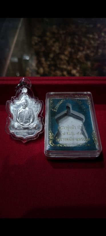 เหรียญใบสาเก หลวงปู่แผ้ว ปวโร วัดรางหมัน รุ่นอายุ 90 ปี เนื้อเงิน NO.2959 ปี 2555 จว.นครปฐม มาพร้อมกล่องเดิมๆ