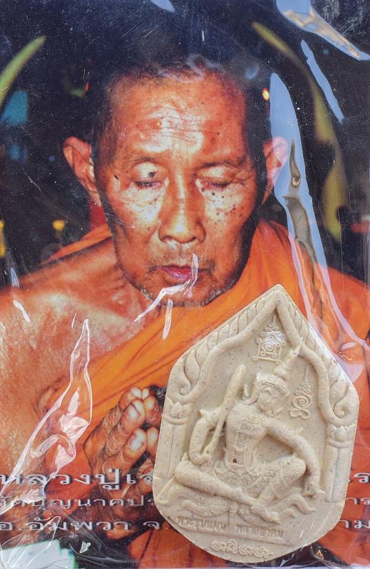 *** เคาะเดียวแดง ทุกรายการ *** ขุนแผนพรายอาคม รุ่นแรก เนื้อผงขาว ด้านหลังฝังของมงคล หลวงปู่เฉลิม วัดบุญนาคประชาสรรค์ สมุทรสงคราม ปี 2554 มีซองวัด สภาพตามรูป (No.2)