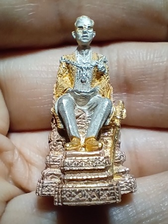 รูปหล่อ ร.9 นั่งบัลลังก์ 6 รอบ เนื้อเงิน สามกษัตริย์ วัดบวร ปี 40 เลข 5140