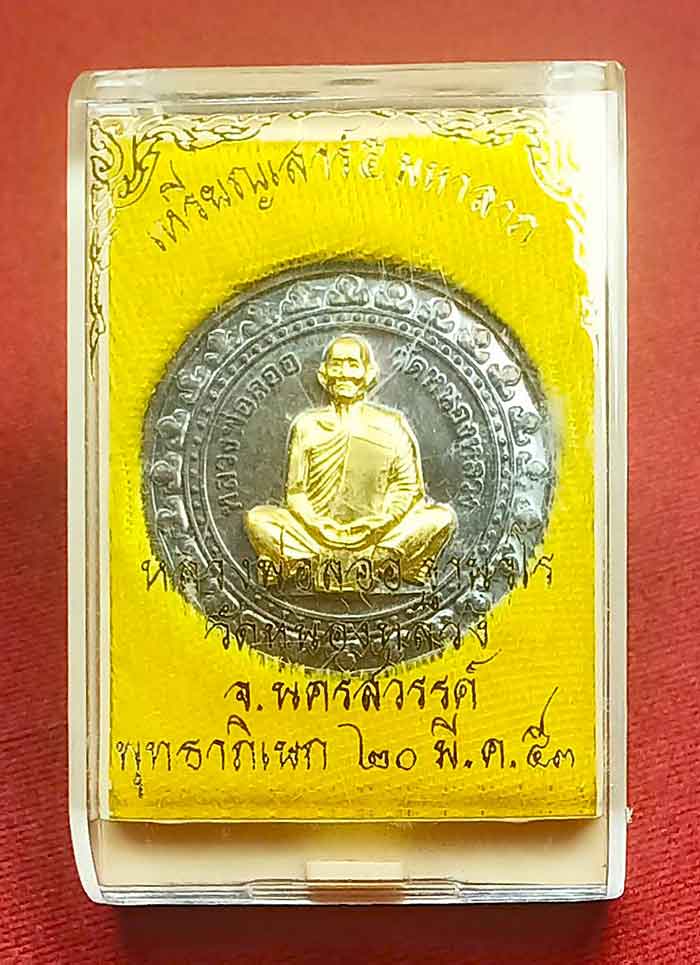 เหรียญมหาลาภ หลวงพ่อลออ วัดหนองหลวง เนื้อนวะหน้าทอง หมายเลข 197 ปี 2553 พร้อมกล่องเดิมตามภาพครับ (องค์สุดท้าย)