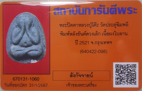 พระปิดตายันต์ดวงเล็ก หลวงปู่โต๊ะ วัดประดูฉิมพลี เนื้อใบลาน ปี2521