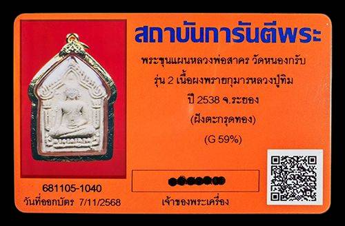 พระขุนแผนหลวงพ่อสาคร วัดหนองกรับ รุ่น 2 เนื้อผงพรายกุมารหลวงปู่ทิม ปี 2538 จ.ระยอง (ฝังตะกรุดทองคำ)สร้าง500องค์ เลี่ยมทอง+บัตรG...