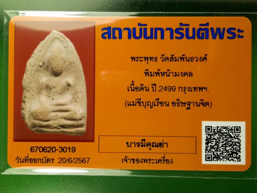 พระพิมพ์วัดตะไกร ปี 2499 ค ุณแม่บุญเรือนอธิษฐานจิต พุทธคุณดุจเดียวพระพุทโธน้อยและพระมงคลมหาลาภ พร้อมบัตรครับ