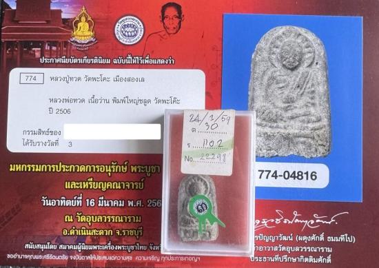รายการวัดใจ หลวงปู่ทวด เนื้อว่าน วัดพะโค๊ะ2506 พิมพ์ใหญ่ชลูด พระสวยเดิม ดูง่ายสุดๆ ติดรางวัลงานใหญ่ที่ 3 รับประกันแท้และตามกฎครับ