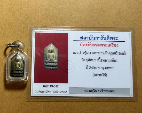 พระปางอุ้มบาตร เจ้าคุณศรี(สนธ์) เนื้อทองผสม ปี2494+บัตรรับรอง
