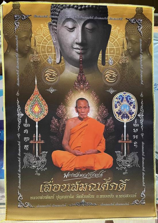 หลวงพ่อพัฒน์ วัดห้วยด้วน จ.นครสวรรค์ ผ้ายันต์เลื่อนสมณศักดิ์ ผืนใหญ่ขนาด กว้าง 34 ซม สูง 49 ซม เลข 685