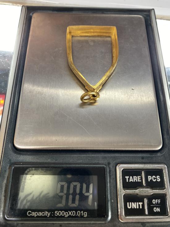 มาพร้อมเหลี่ยมกรอบทองคำแท้ น้ำหนัก 9.04 กรัม เปอร์เซ็นทองยิงมาได้ 80.14 ครับ