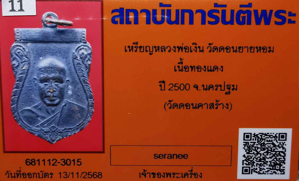 เหรียญหลวงพ่อเงิน วัดดอนยายหอม เนื้อทองแดง ห่วงเดิม ปี2500 จ.นครปฐม (วัดดอนคาสร้าง)+ บัตรG-pra สภาพเดิมค่ะ พระสภาพตามรูปทุกประการค่ะ