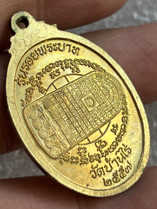 เหรียญหลวงพ่อคูณ วัดบ้านไร่ รุ่น มหาลาภ แจกทาน หน้าศรีนคร หลังรอบพระบาท ปี 2557 เนื้อทองฝาบาตร