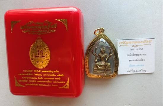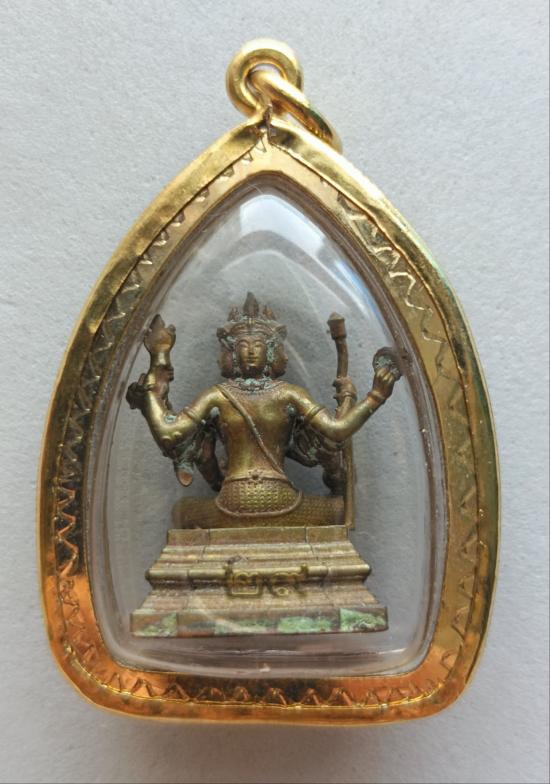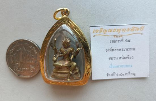วัดใจเคาะเดียวแดงจ้า รูปหล่อพระพรหม รุ่นเจริญพรพุทธศิลป์ หลวงปู่ศิลา พระอาจารย์ต้อม หลวงพ่อสุริยันต์ หลวงปู่เวิน เสก เนื้อชนวนสนิมเขียว เลี่ยมกรอบชุบทอง เคาะเดียวแดงจ้า