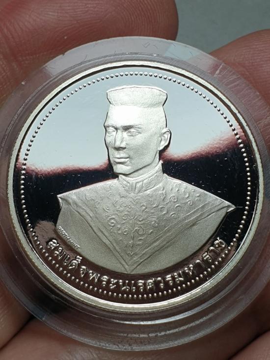 เหรียญพระพุทธชินราชหลังสมเด็จพระนเราศวร เนื้อเงินพ่นทรายขัดเงา บล็อกนอก เพิร์ทมินท์ ออสเตรเลีย สภาพสวย ปี2536 กล่องเดิม