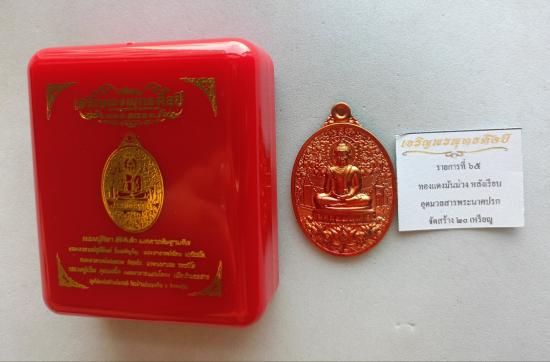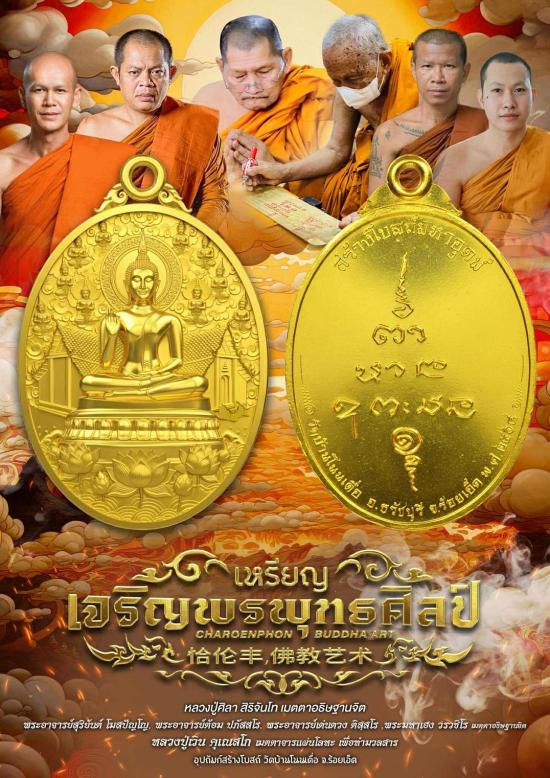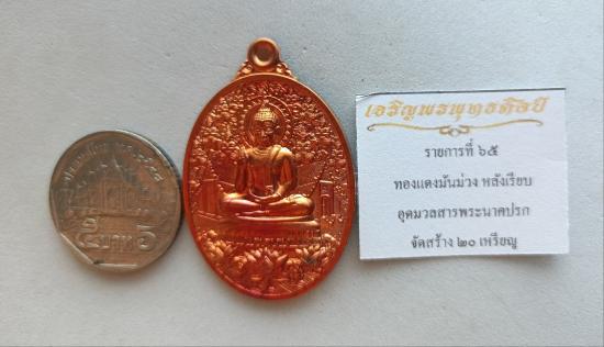 วัดใจเคาะเดียวแดงจ้า เหรียญเจริญพรพุทธศิลป์ หลวงปู่ศิลา พระอาจารย์ต้อม หลวงพ่อสุริยันต์ หลวงปู่เวิน เสก เนื้อทองแดงมันม่วงหลังเรียบ อุดมวลสารพระนาคปรก หมายเลข8 เคาะเดียวแดงจ้า