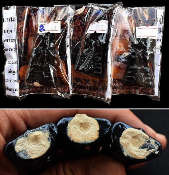 ชุด 3 องค์...พี่จุกเจ้าทรัพย์แบบนั่งลงรัก ใต้ฐานอุดผงมวลสาร ปี 2555 หลวงปู่สมชาย วัดคงคา จ.กาญจนบุรี พร้อมซองรูปใบฝอยเดิมจากวัด สภาพพระตามรูปทุกประการ (ขนาดประมาณ 5.9 x 3 ซม.)