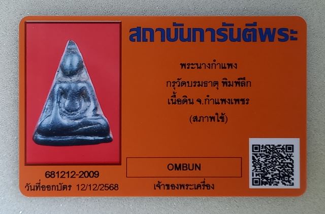 +++ พระนางกำแพง พิมพ์ลึก(ท้องลอน) เนื้อดิน กรุวัดบรมธาตุ จ.กำแพงเพชร + บัตร G-Pra +++