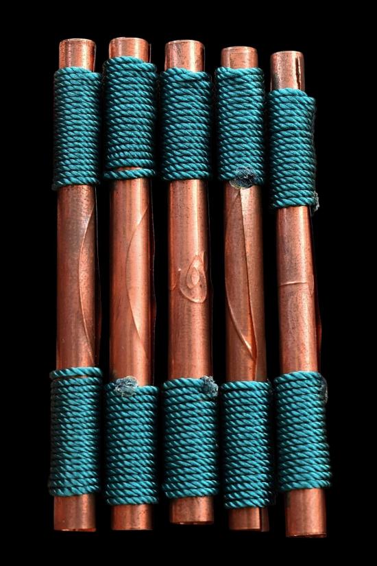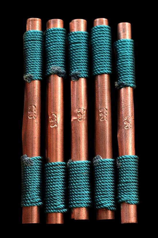 ชุด 5 ดอก...ตะกรุดประสานใจ (หญิงร่ำไห้ ชายร่ำหา) ปี 2558 หลวงปู่บัว วัดดอนขวาง จ.นครราชสีมา พร้อมซองรูปเดิมจากวัด สภาพพระตามรูปที่ลงทุกประการ (ขนาดยาว 2.5 นิ้ว)