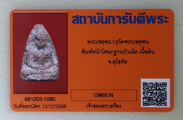 +++ พระเชตุพน พิมพ์หน้าโหนกฐานบัวเม็ด เนื้อดิน กรุวัดพระเชตุพน จ.สุโขทัย + บัตร G-Pra +++