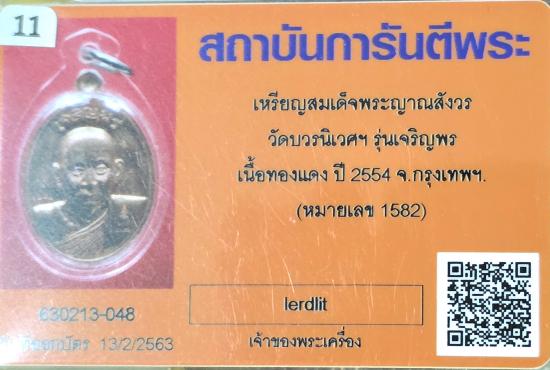 ฉลองพระชันษา 100 ปี เนื้อทองแดง โค๊ตนำเบอร์หมายเลข 1582(จัดสร้างเพียง 2,999 เหรียญเท่านั้น)พิธีมหาพุทธาภิเษก ณ วัดบวรนิเวศวิหาร 13 ธันวาคม 2554 โครงการพระสังฆราชาพระชันษา 100 ปี วัดบวรนิเวศวิหาร วัตถุประสงค์ในการจัดสร้างชัดเจน