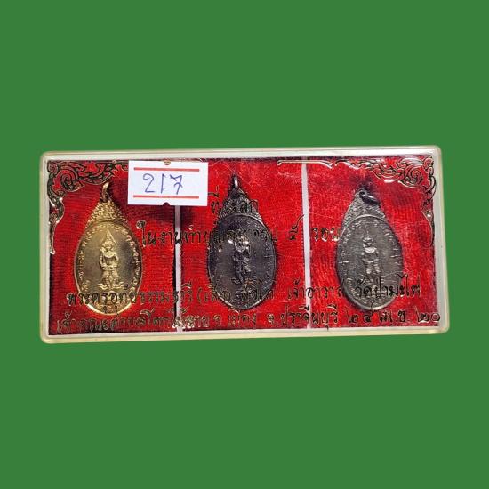กล่องชุด กระไหล่ พระสยามเทวาธิราช วัดป่ามะไฟ จ.ปราจีนบุรี พ.ศ.2518 พิมพ์เล็ก หลวงพ่อเอียและเกจิจำนวนมากร่วมปลุกเสก