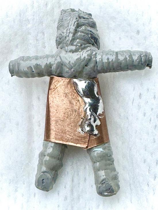 สร้างขึ้นจากไม้ไผ่นำมาเหลาให้เป็นตอก แล้วนำมาผูกโครงขึ้นรูปเป็นหุ่น ใส่ตะกรุดไว้ภายใน พันด้วยด้ายสายสิญจน์จูงศพ แล้วนำมาเสกกำกับจนสำเร็จเป็นหุ่นพยนต์สำหรับหุ่นพยนต์รุ่นพ่อรุ่ง พร้อมใบฝอย สภาพสวย