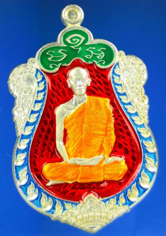 1200-เคาะเดียว เหรียญเสมาอุดมทรัพย์ พระอาจารย์ต้อม วัดท่าสะแบง ชุดกองบุญ เนื้อกะไหล่เงิน ลงยาแดง ขอบฟ้า ชุ้มเขียว ลงยาจีวร เลข๒๗๙ เสมาใหญ่พิมพ์นิยม
