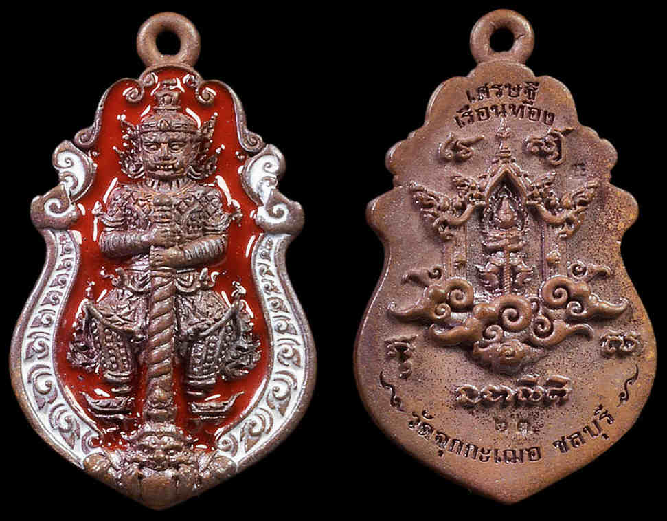 - เนื้อทองแดง ลงยาพื้นแดง กนกขาว พิมพ์นี้สร้างน้อยแค่ 100 เหรียญ ตอกโค้ด ตอกเลข-๖๓ (เลขสวย2หลัก)