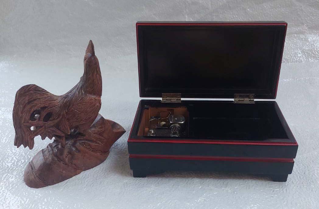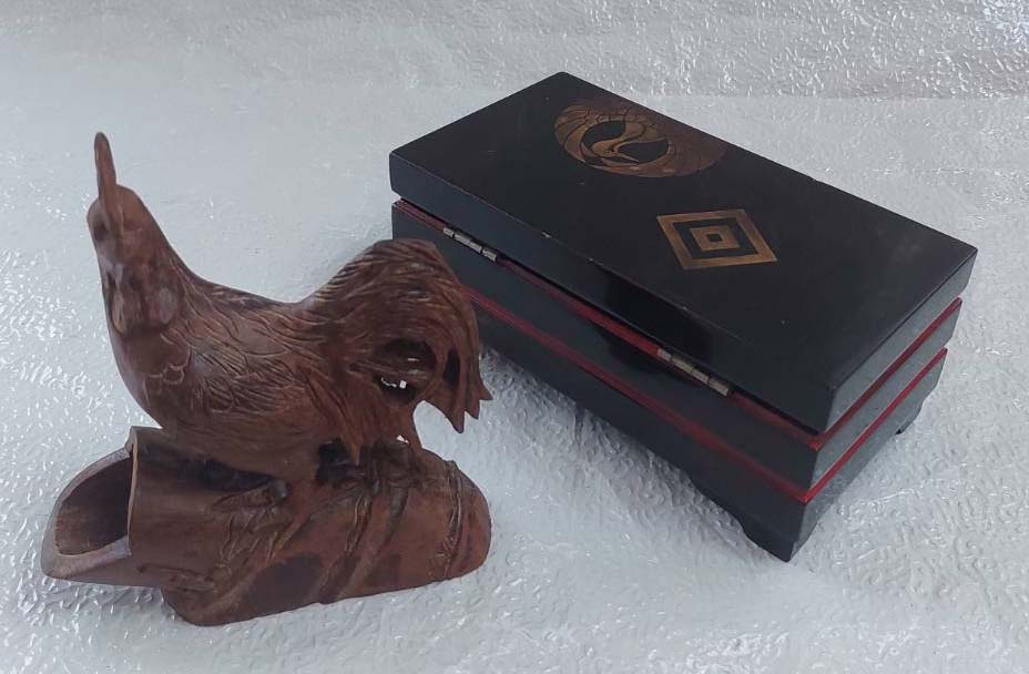 ***วัดใจ****กล่องเครื่องประดับ กล่องดนตรีไม้วินเทจ กับไก่แกะสลักด้วยไม้พยุง ฝีมือของญี่ปุ่น