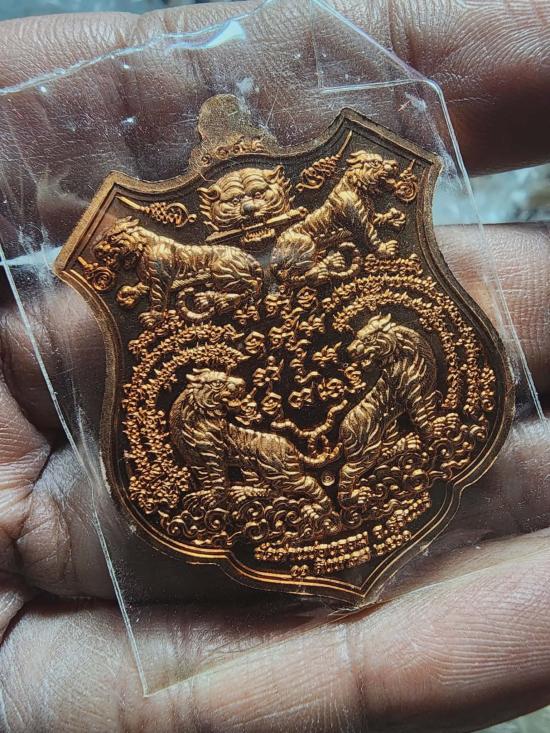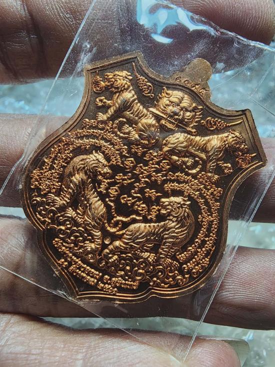 !!! 100 เท่านั้น !!! เหรียญพยัคฆ์ ๕ มหาเฮง หลวงปู่เฮง วัดบ้านด่านช่องจอม สุรินทร์ เนื้อทองแดงพร้อมกล่อง