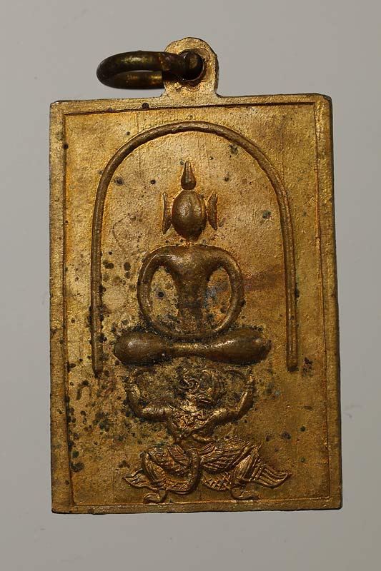 เหรียญพระครูถาวรธรรมสาร หลังพระสมเด็จทรงครุฑ เนื้อทองเหลือง วัดลาดทราย อยุธยา ปี2519