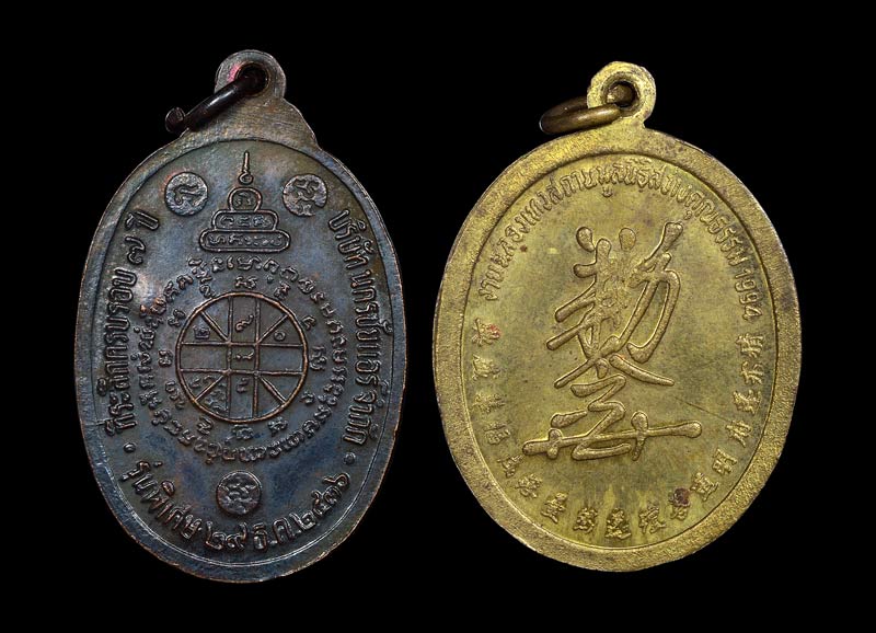 เหรียญ ที่ระลึกครบรอบ 7 ปี นครชัยแอร์ ( เนื้อทองแดง ) พ.ศ.2536 และ เหรียญ หลื่อซุ่งเอี๊ยงซือ สว่างคุณธรรม 1994 ( เนื้อทองเหลือง ) ** 2 **