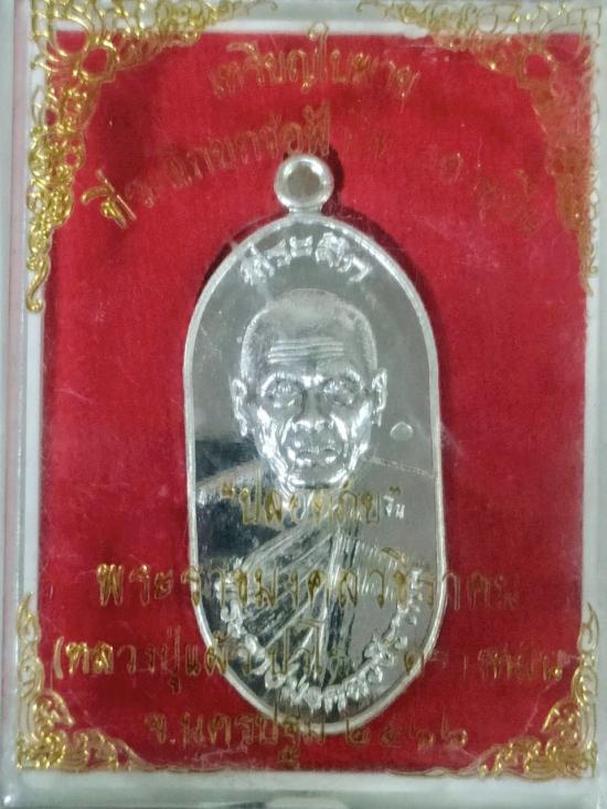 เหรียญใบพาย รุ่นแรก หลวงปู่แผ้ว วัดรางหมัน จ.นครปฐม เนื้อเงิน ตอกโค๊ต เงิน ที่สังฆฎิ ตอกโค๊ต แผ้ว ตอกหมายเลขด้านหลัง 3204