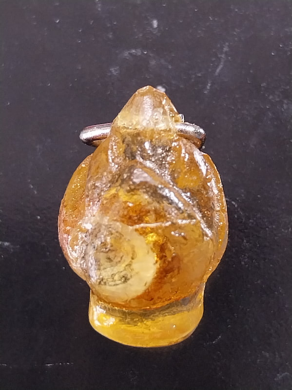 ลูกอมทองไหล หลวงพ่อทอง วัดเขาตะเครา จ.เพชรบุรี เนื้อเรซิ่น พิมพ์ทรงดอกบัว รุ่น 2 บรรจุรูป 2 บาน รับประกันแท้ตามกฎเวปฯ