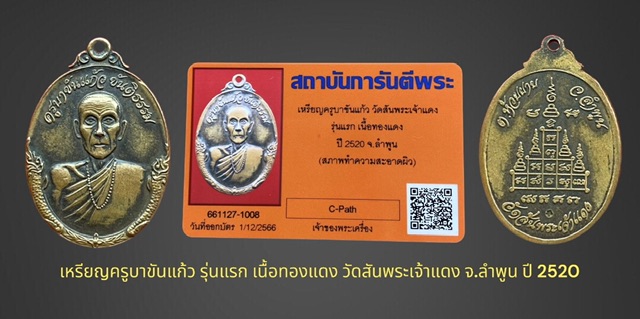 เหรียญครูบาขันแก้ว รุ่นแรก เนื้อทองแดง วัดสันพระเจ้าแดง จ.ลำพูน ปี 2520 เคาะเดียว