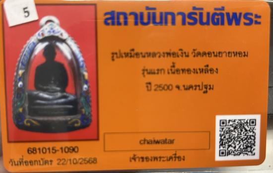 รูปเหมือนหลวงพ่อเงิน วัดคอนยายหอม รุ่นแรก เนื้อทองเหลือง ปี 2500 จ.นครปฐม พร้อมตลับเงินลงยาครับ