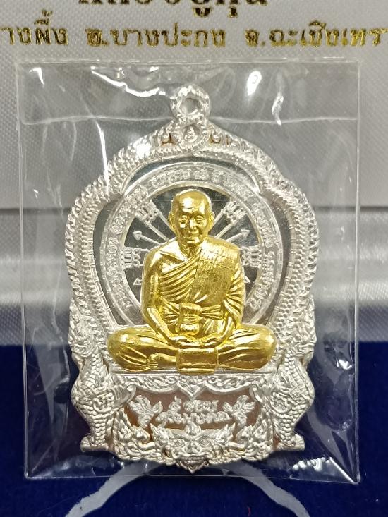 เหรียญ 8 รอบ ศุภมงคล ปี2558 หลวงปู่หุน วัดบางผึ้ง อ.บางปะกง จ.ฉะเชิงเทรา สำเร็จ สมปรารถนา ร่ำรวย เนื้อเงินบริสุทธิ์หน้ากากทองคำ หมายเลข 44