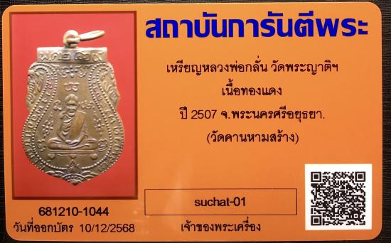เหรียญหลวงพ่อกลั่น วัดพระญาติฯ เนื้อทองแดง ปี 2507 จ.พระนครศีอยุธยา วัดคานหามสร้าง