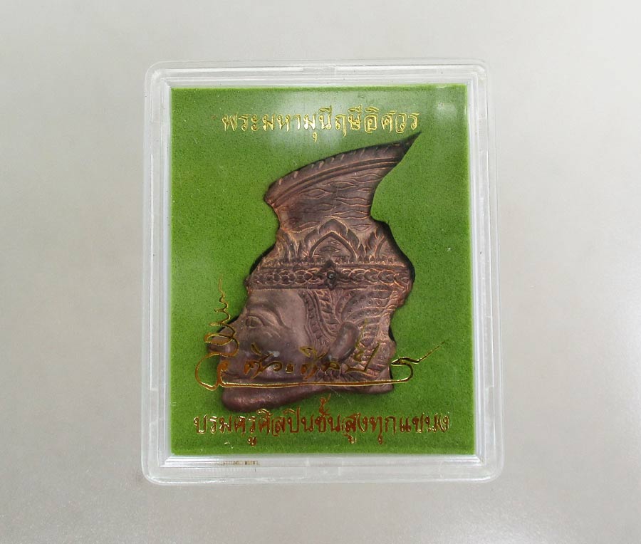 เหรียญปั๊ม เศียรพระมหามุนีฤาษีอิศวร บรมครูศิลปินชั้นสูงทุกแขนง โดย ศิวะศิลป์ เนื้อนวะโลหะ ตอกโค๊ต กล่องเดิม !!
