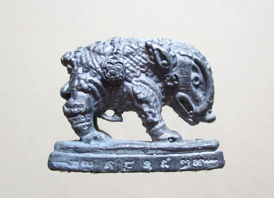 พญาหมูพลิกแผ่นดินรุ่นแรก หลวงปู่กาหลง เขี้ยวแก้ว พ.ศ.2549 เนื้อตะกั่วขอมโบราณพันปี อุดชันโรงยาเปียกฝังตะกรุดเงิน ตอกโค๊ต ตอกเลข สภาพสวย !!