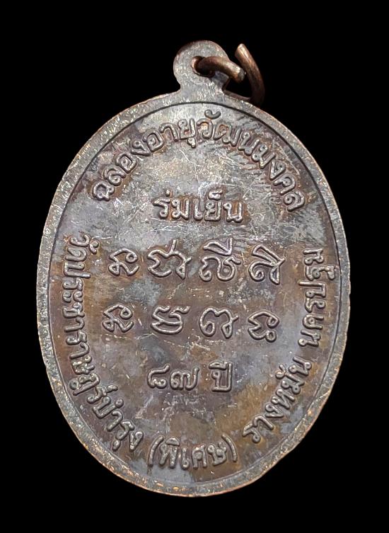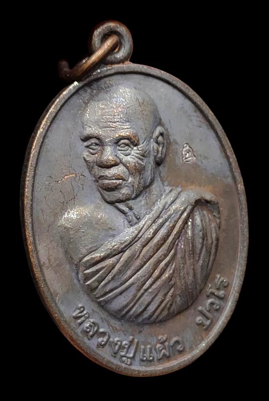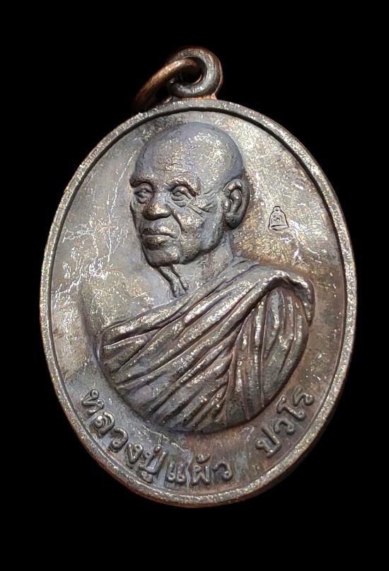เหรียญร่มเย็น เนื้อทองแดงรมดำ หลวงปู่แผ้ว ปวโร วัดรางหมัน
