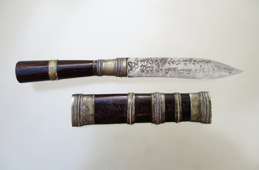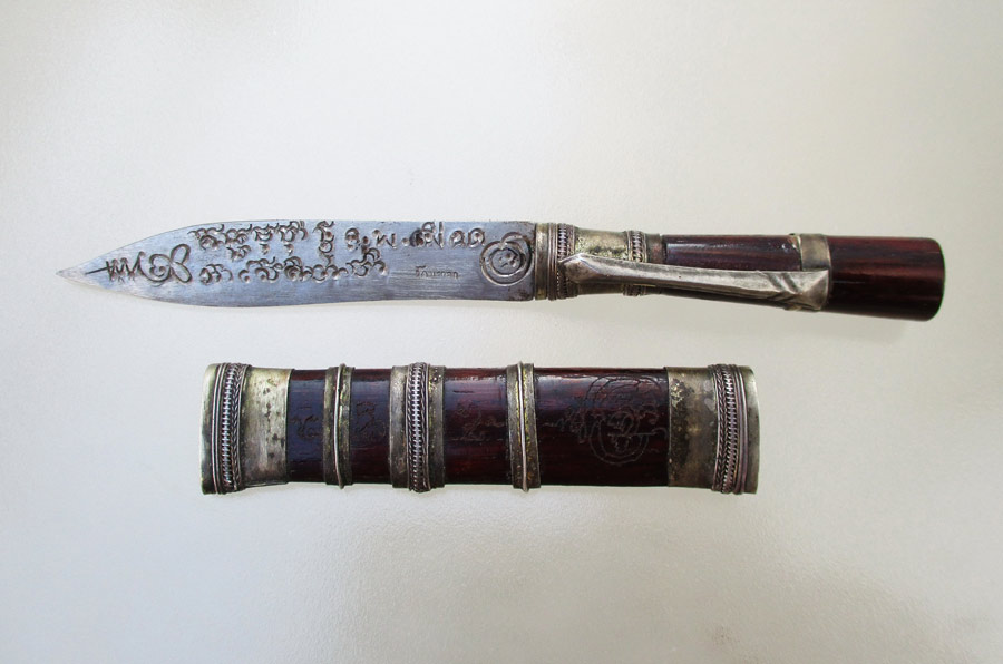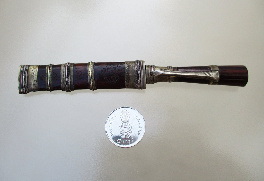 ด้ามไม้ - ฝักไม้ ขนาดยาวรวมฝัก 4.5 นิ้ว ลงเหล็กจารยันต์ทั้งด้าม !!