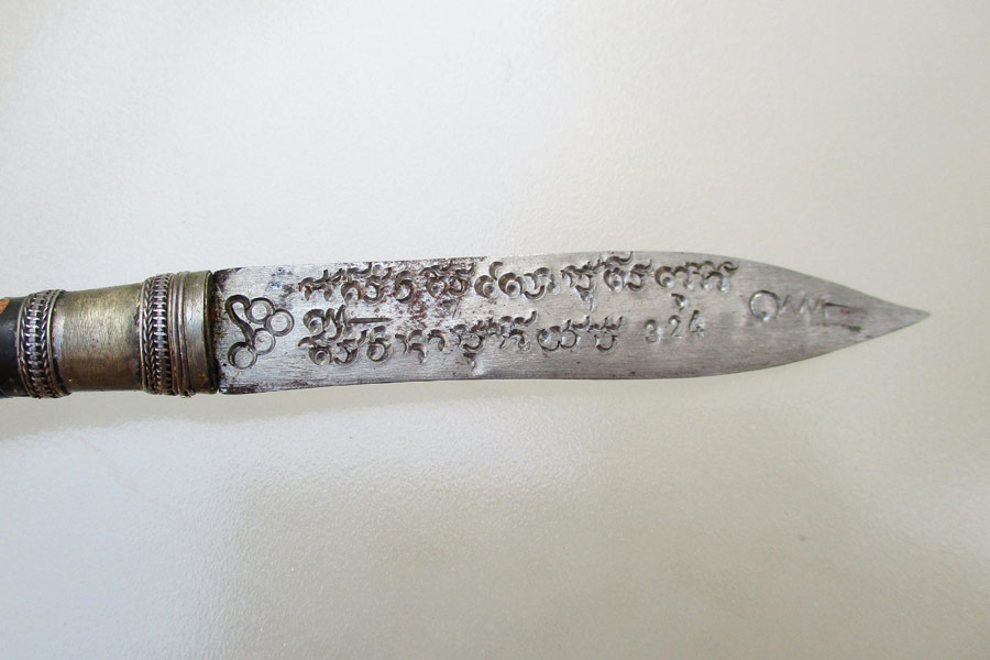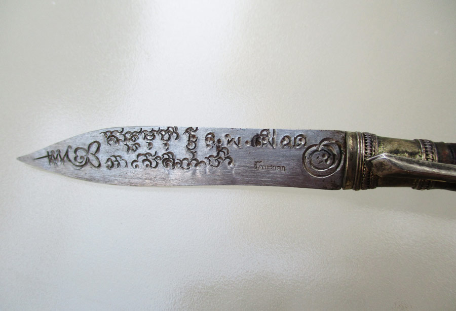 มีดหมอ - มีดเทพศาสตรารุ่นแรก หลวงพ่อเผือด วัดมะกอก ด้ามไม้ ฝักไม้ จารยันต์ทั้งด้าม ตอกโค๊ต / ตอกเลข สภาพสวย เข้มขลัง !!