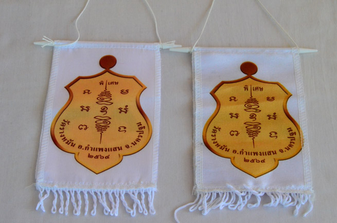 ผ้ายันต์แขวนหน้ารถ หลวงปู่แผ้ว วัดรางหมัน จ.นครปฐม อายุ99 ปี 2 ผืนสวยครับ