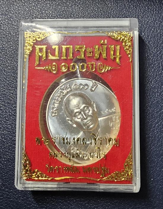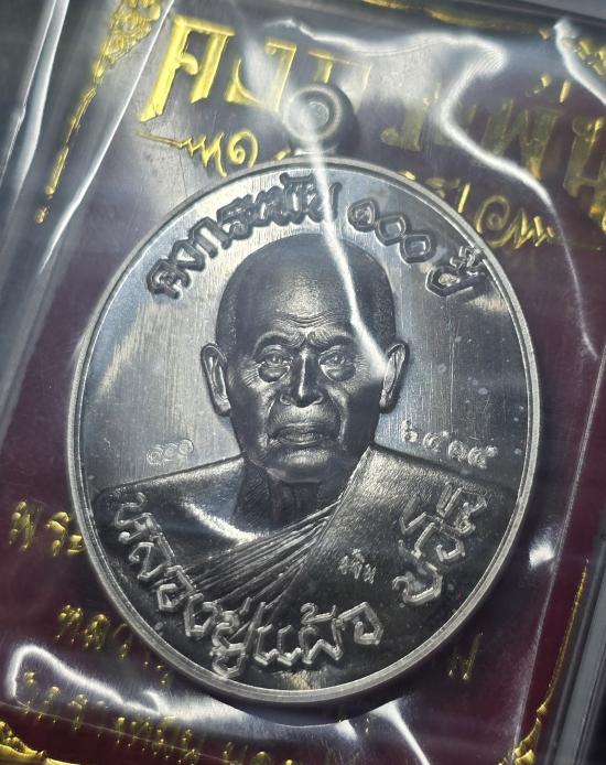 เหรียญคงกระพัน 100 ปี หลวงปู่แผ้ว ปวโร วัดรางหมัน เนื้อเงินสวยๆพร้อมกล่องเดิม