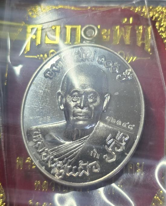 เหรียญคงกระพัน 100 ปี หลวงปู่แผ้ว ปวโร วัดรางหมัน เนื้อเงินสวยๆพร้อมกล่องเดิม(4)
