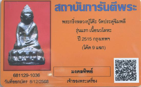 พระกริ่งรุ่นแรก หลวงปู๋โต๊ะ วัดประดู่ฉิมพลี เนื้อนวะโลหะ ปี 2515 โค๊ด 9 แฉก สภาพสวยแชมป์ 1 ใน 200 องค์ (เคาะเดียวแดง)