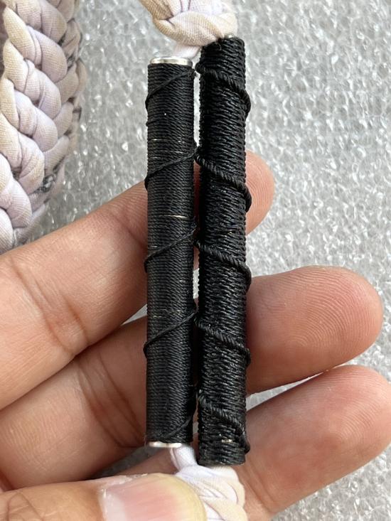 เชือกคาดเอวถักจากผ้าคลุมโรงนำมาฉีกลงยันต์คาถาที่ผ้าแล้วนำมาตีเกลียวจึงนำมาถักเชือกเป็นเบี้ยแก้ พร้อมตะกรุด2ดอก สร้างตามตำราสายวัดตะโน สภาพสวยเดิมๆ